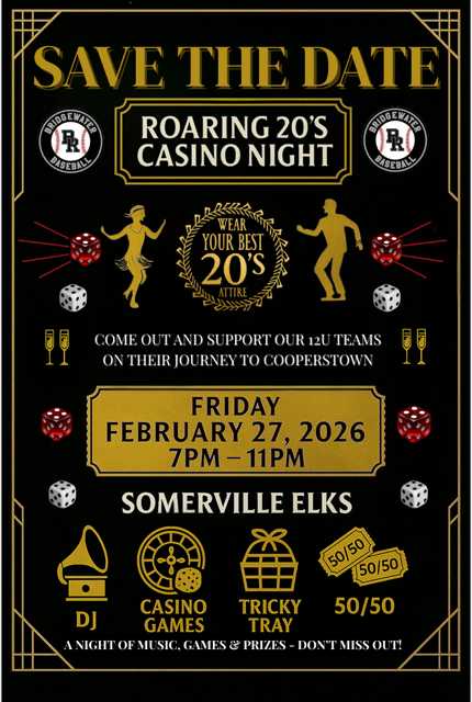 Step back into the Roaring 20βs and join us for a night of glitz, glam, and good luck at Bridgewater Baseballβs Casino Night!